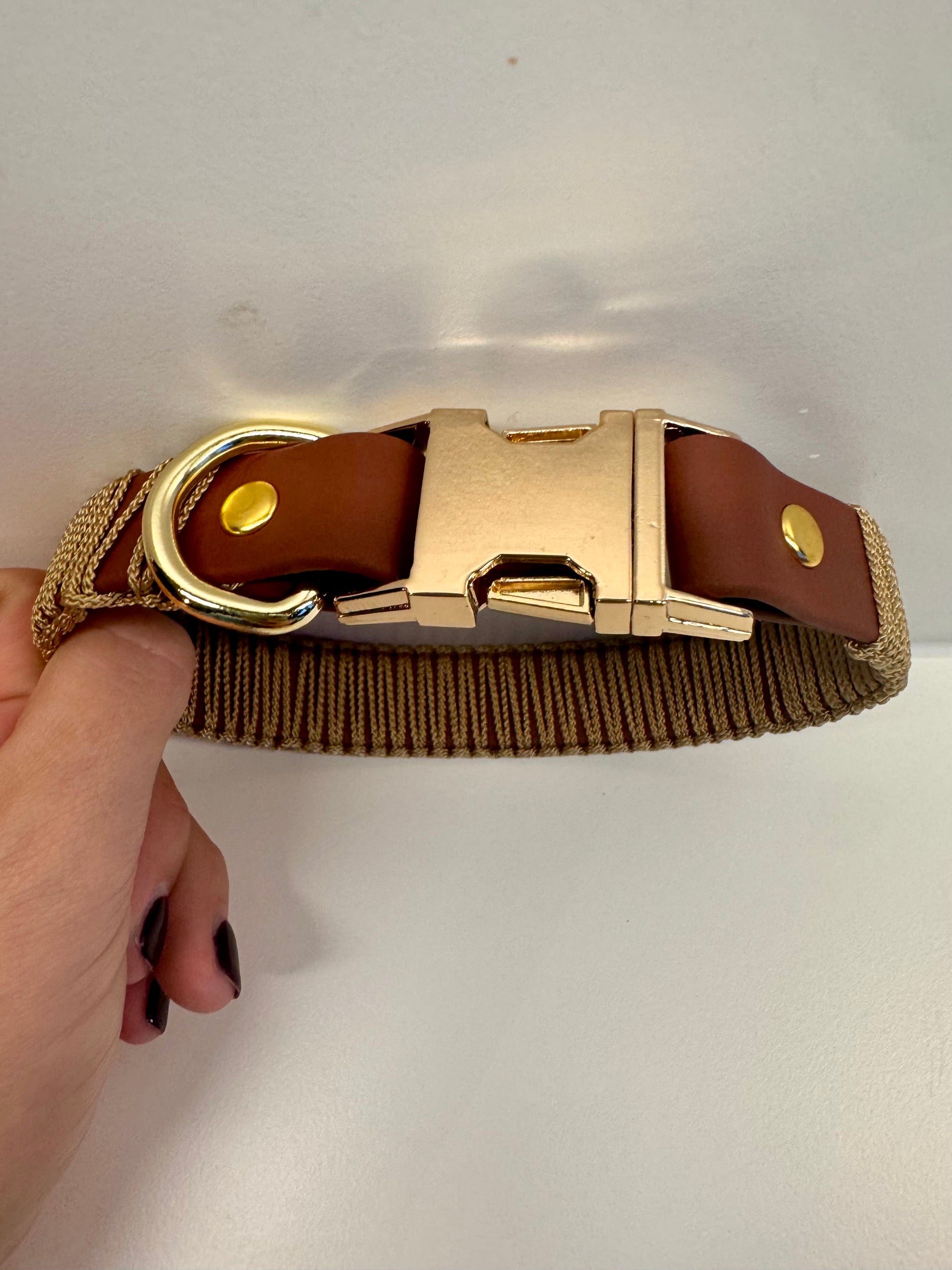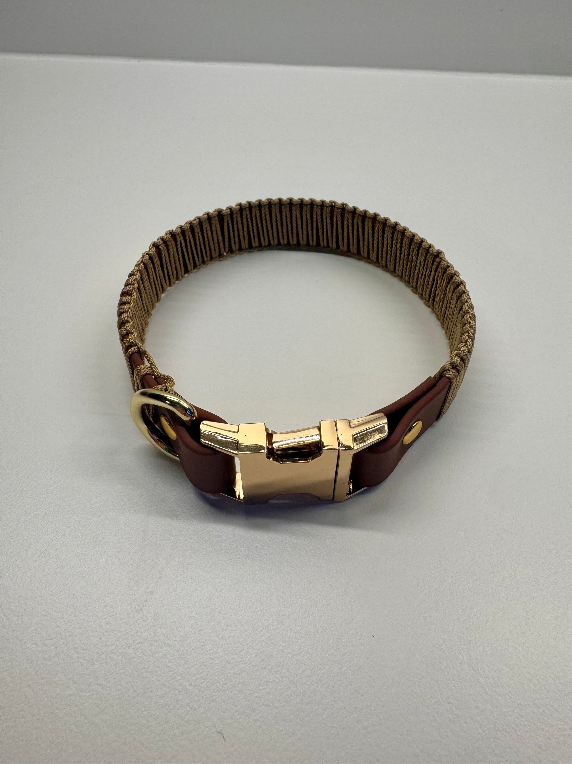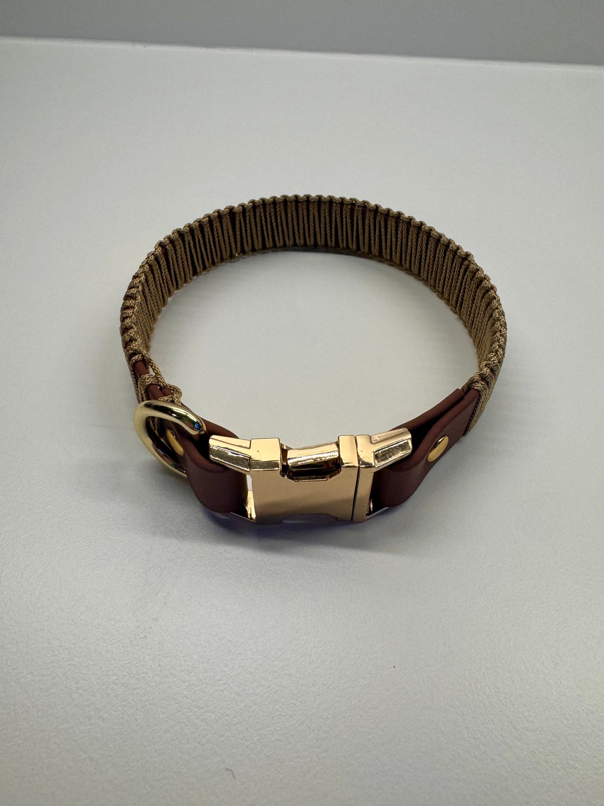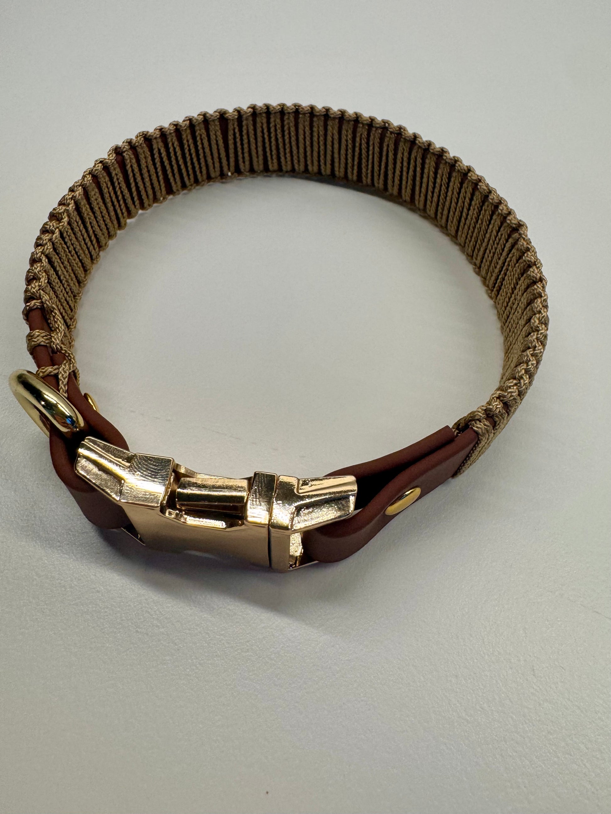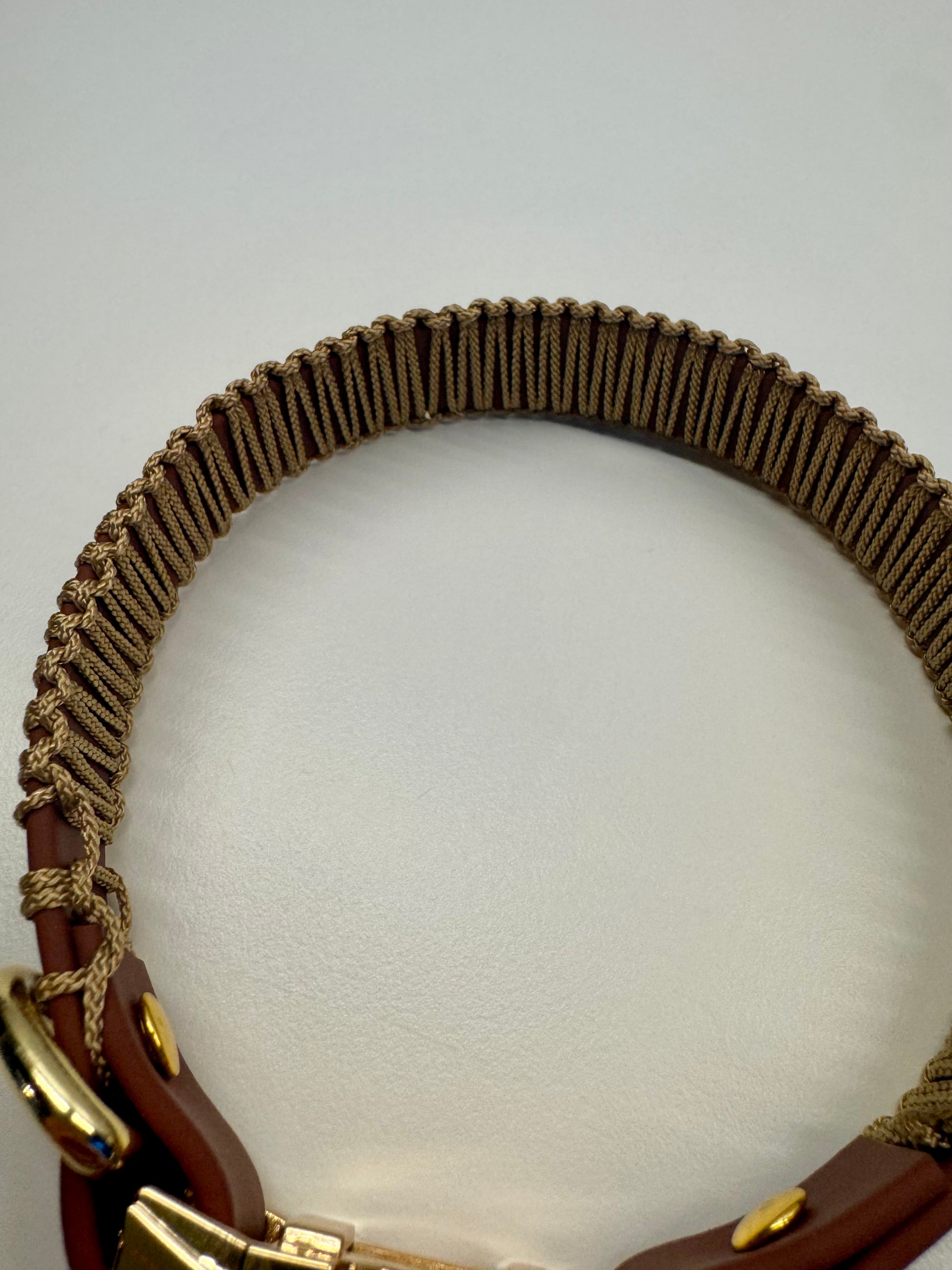 Op zoek naar een elegante en simpele hondenhalsband die opvalt? Deze handgemaakte Biothane halsband is een echte blikvanger voor jouw viervoeter. Gemaakt van hoogwaardig, soepel Biothane in een bruine kleur, afgewerkt met luxe details voor een exclusieve uitstraling.