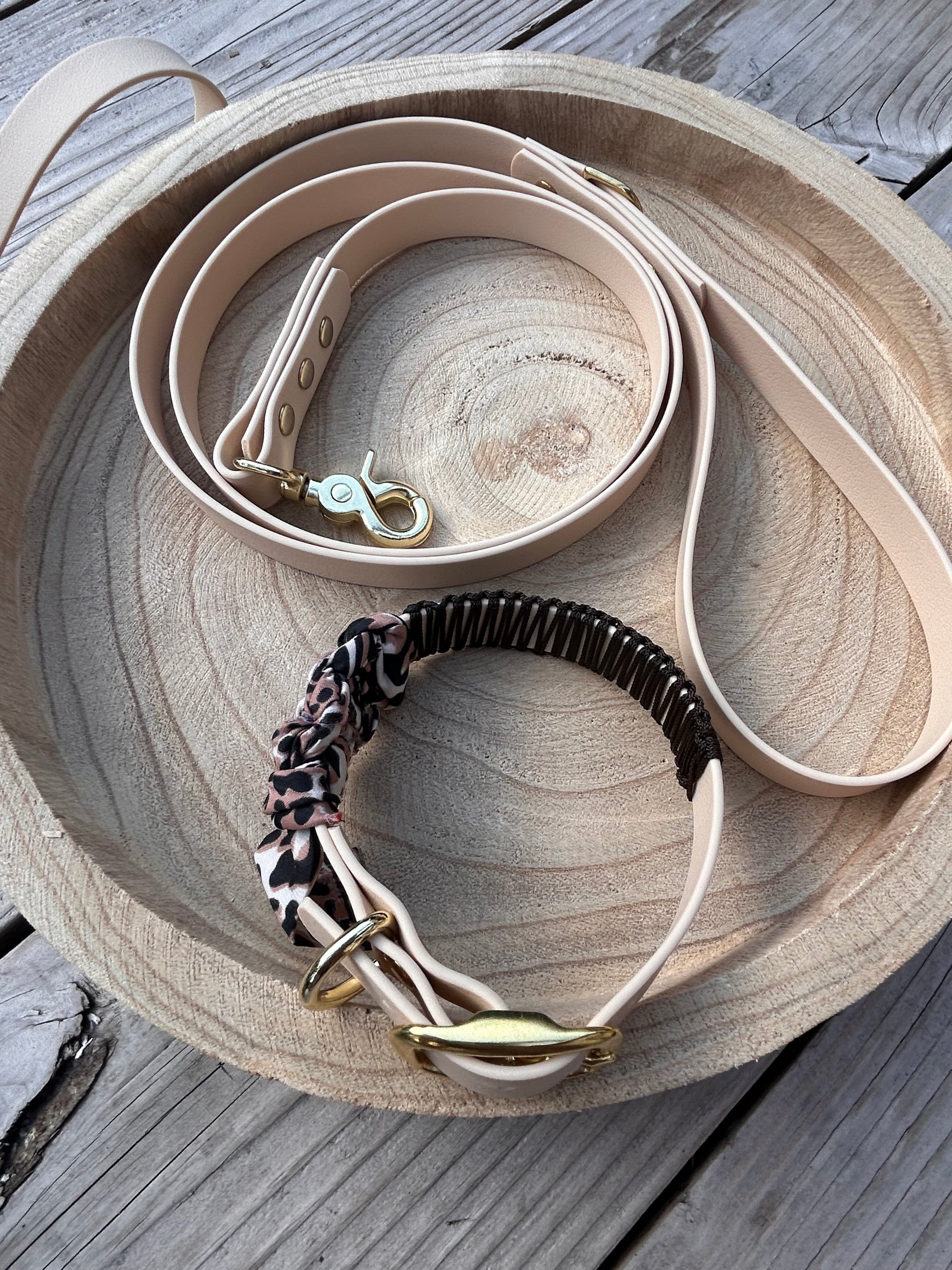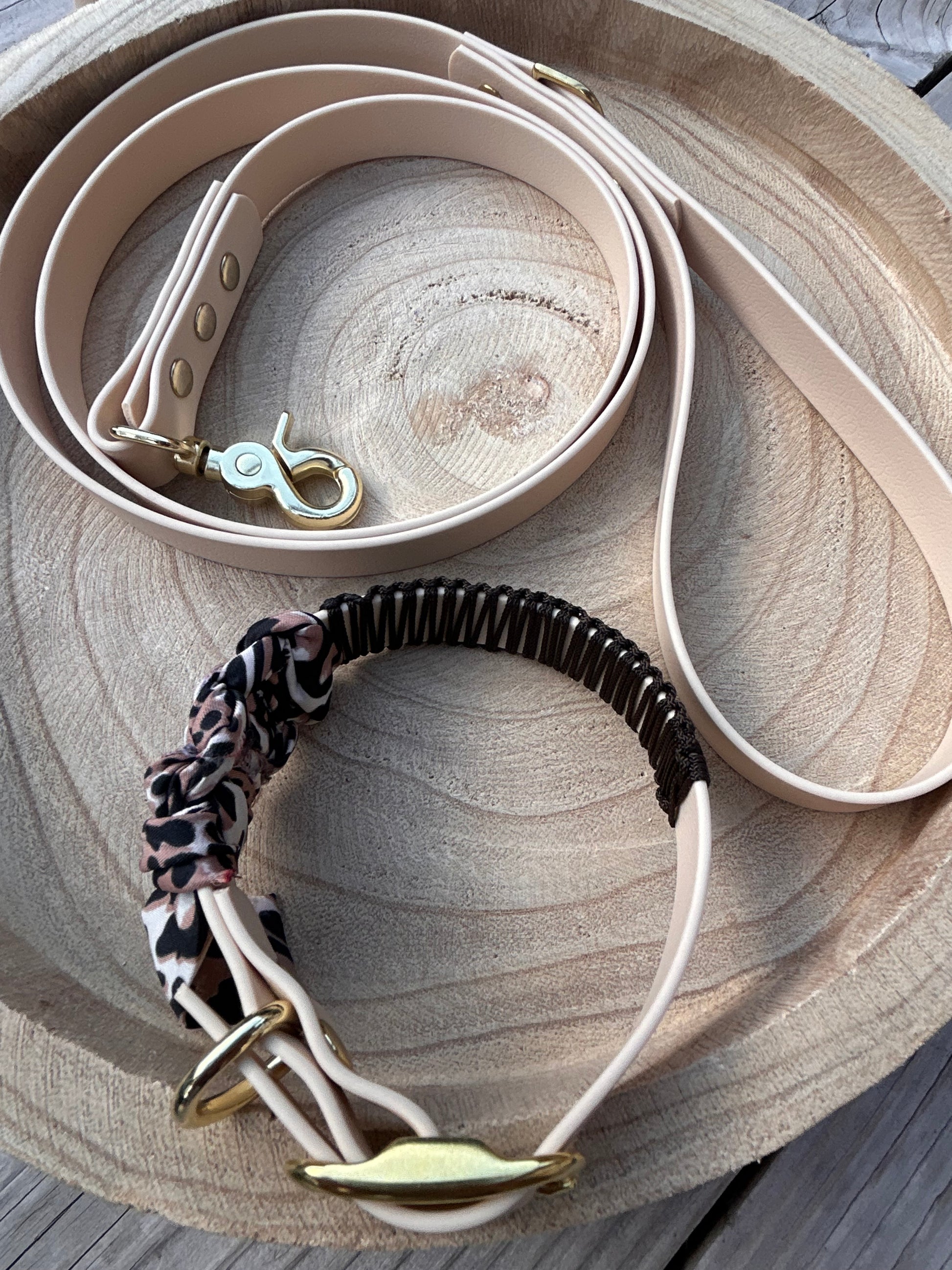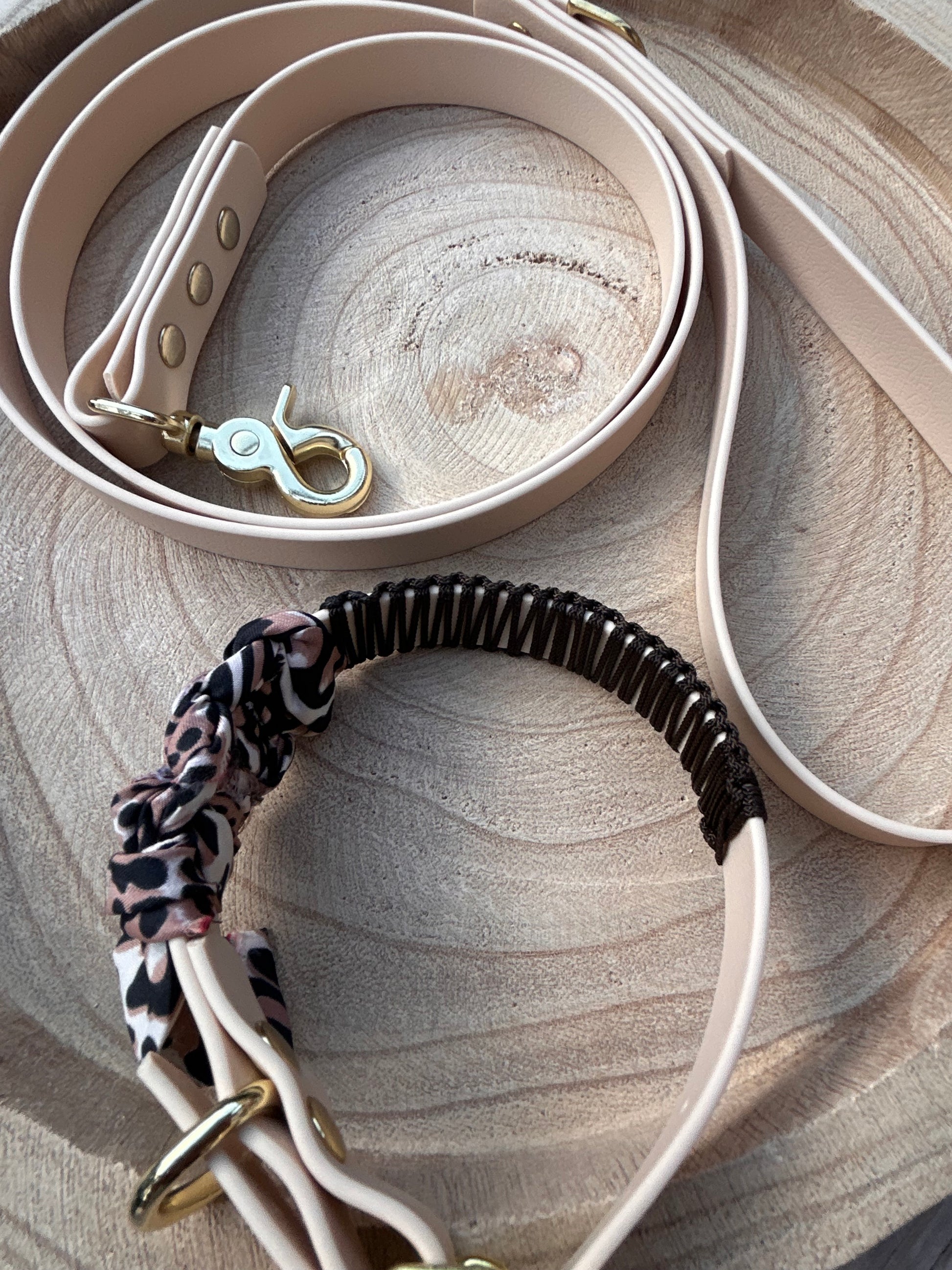Stevige en kleurrijke riem in beige, gemaakt van soepel en geurvrij Biothane. Waterbestendig, makkelijk schoon te maken en perfect voor elk avontuur. Afgewerkt met zilverkleurig beslag en een comfortabele handlus.