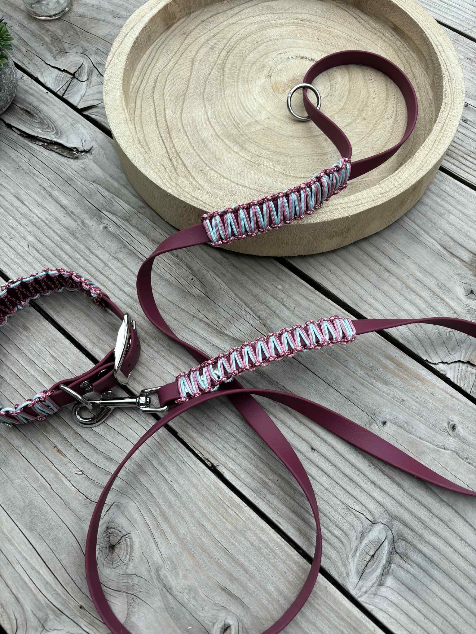 Deze handgemaakte lijn is niet alleen stevig, maar ook stijlvol tot in de details: met gouden accenten, Biothane handgreep.