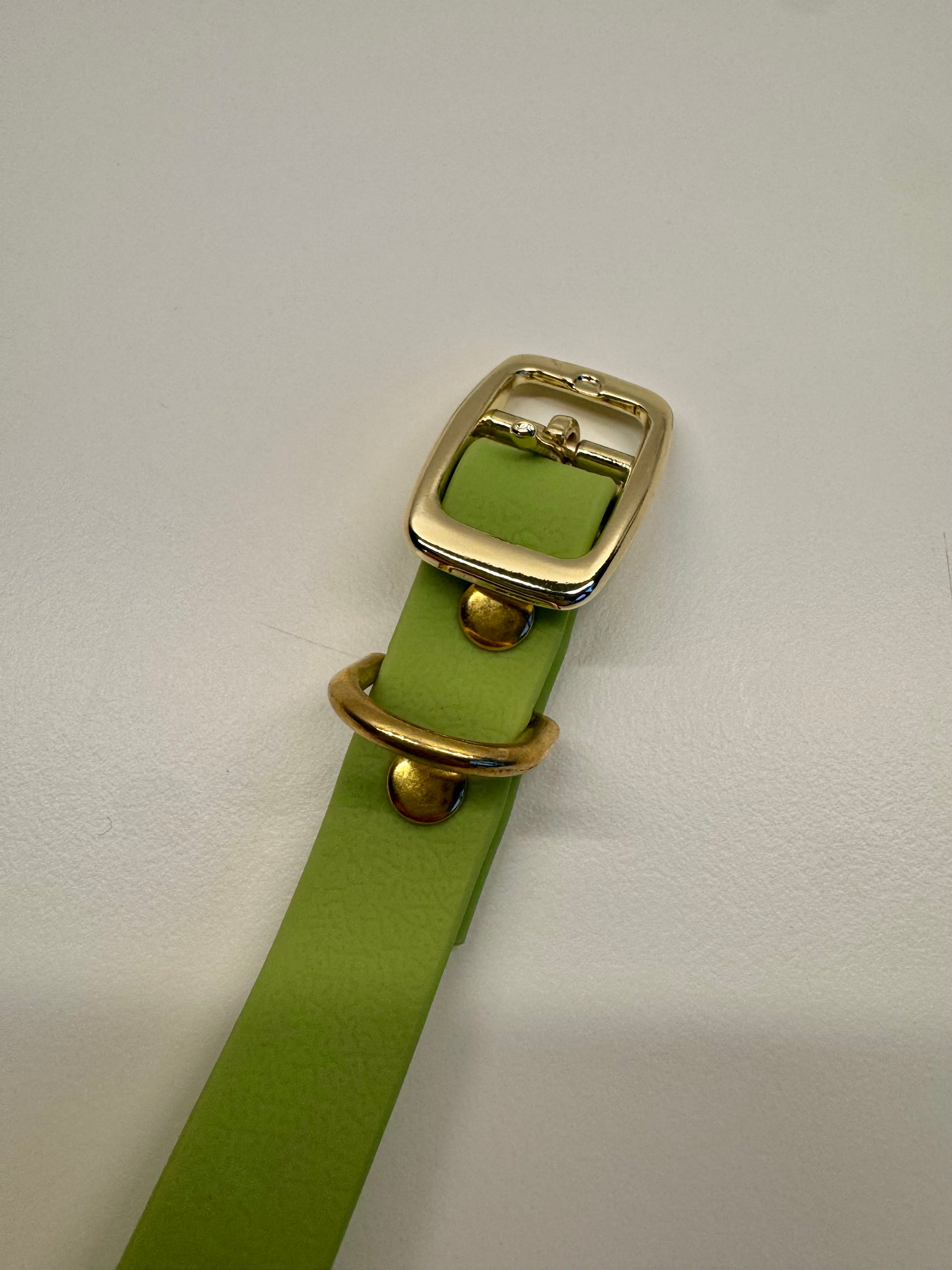 Op zoek naar een elegante en simpele hondenhalsband die opvalt? Deze handgemaakte Biothane halsband is een echte blikvanger voor jouw viervoeter. Gemaakt van hoogwaardig, soepel Biothane in groen, afgewerkt met luxe details voor een exclusieve uitstraling.